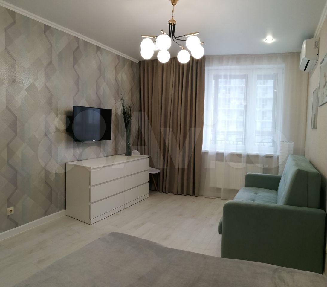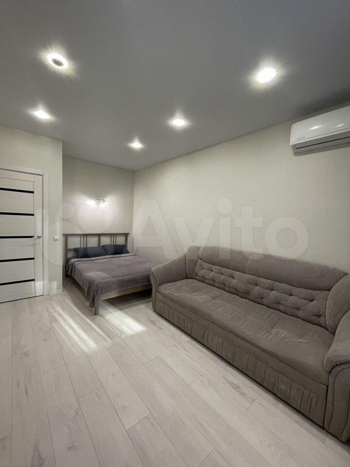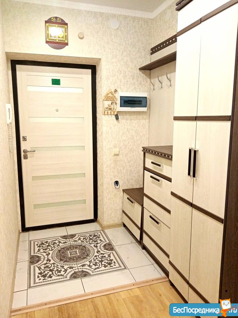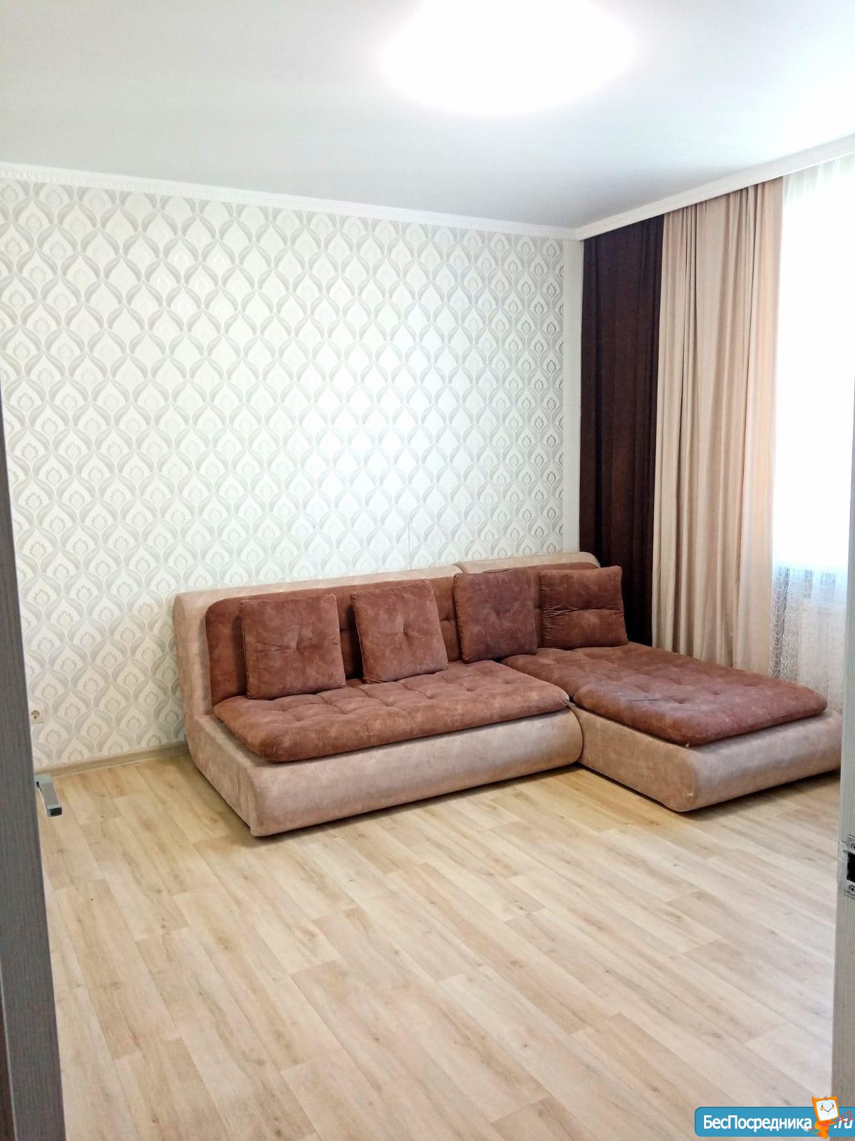 Квартира с балконом расположена в ЖК Родина. В новом доме с детскими площадками. Новая квартира, новая мебель, новая техника. Без комиссии!