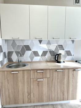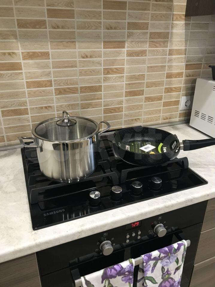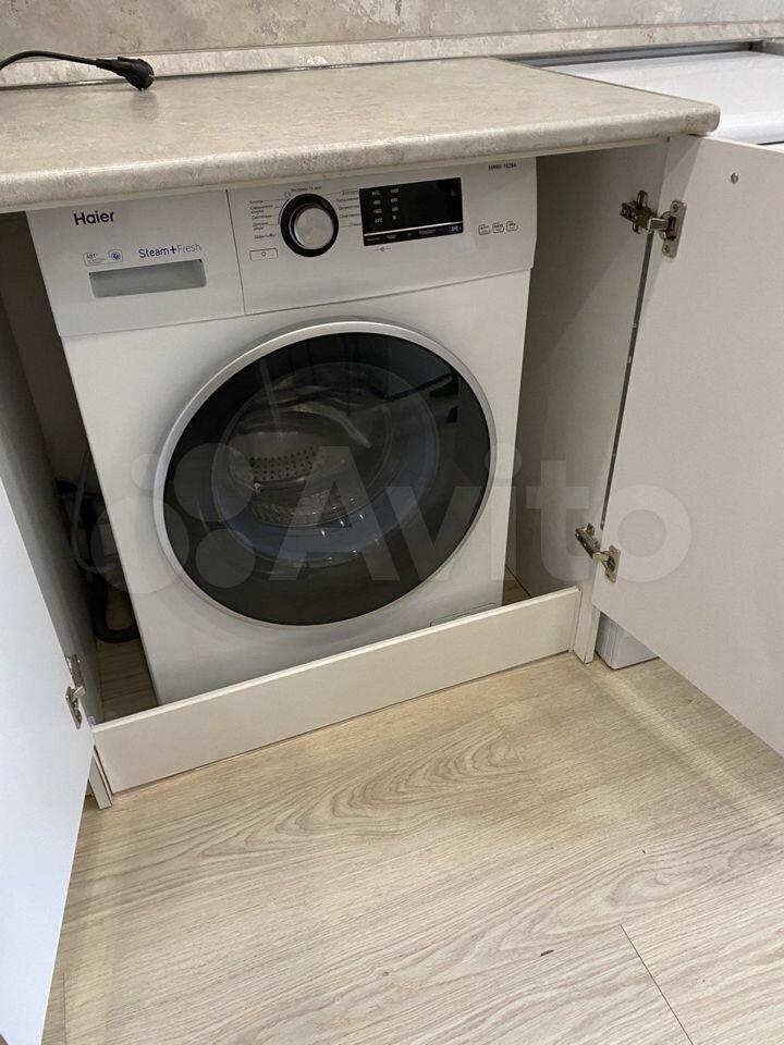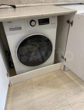 В квартире есть все необходимое для проживания: кухонный гарнитур, микроволновая печь, электрический чайник, раскладной диван, шкаф-купе, стиральная машина.