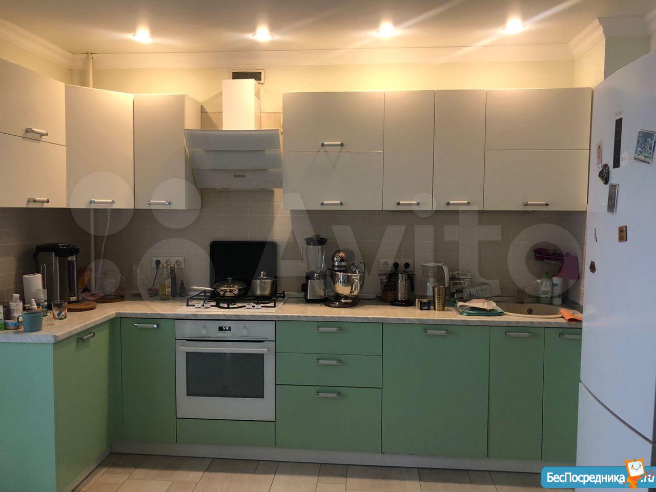 Большая просторная кухня, около 14кв.м. Имеется хороший кухонный гарнитур, обеденная зона.