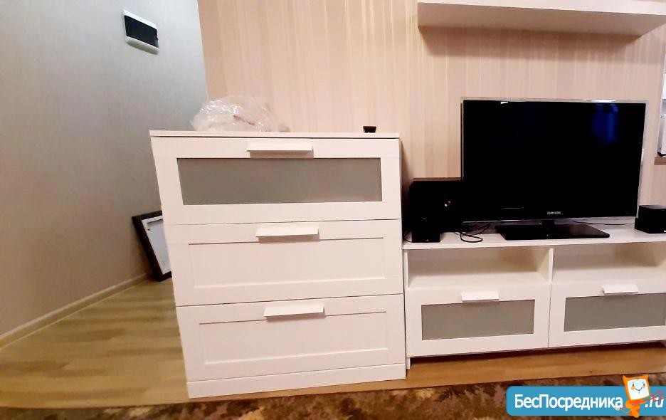 В квартире имеется большой холодильник LG, стиральная машина, телевизор, компьютер со столом. В ванной газовая колонка Vаllаnt.