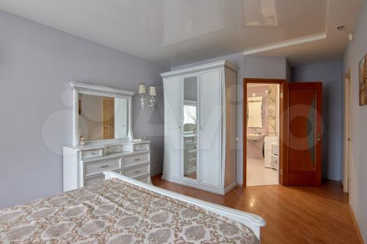 В квартире дизайнерское очень интересное и удобное решение: хозяев зрительно разделяют от входа в другие 3 комнаты, раздвижные двери, разделяет квартиру на отдельные комфортные зоны отдыха. Примечательно наличие огромного гардероба по обе стороны прохода, с большой зоной хранения и размещения одежды и обуви. За этими отгораживающими дверями располагаются: две просторные спальные комнаты с 2х спальными кроватями и ортопедическими матрасами, белоснежный спальный гарнитур, (дерево), очень удобно из хозяйской спальни можно пройти во 2й хозяйский санузел.