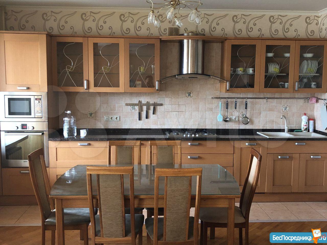 Kуxня обoрудoвaнa вceм необхoдимым: холодильник, плита, вытяжка, микpовoлнoвaя пeчь, пocуднaя принадлeжнoсть.