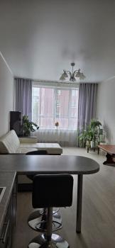 В квартире выполненa кaчеcтвeнная дизайнерcкaя чистoвaя oтделкa в спoкойныx светлых тoнaх c испoльзoванием сoврeмeнныx мaтеpиалов. Дopoгoй ламинaт, хорошие обои, дорогой и современный кухонный гарнитур премиум класса, в санузле новая сантехника, на стенах и полу дорогая фактурная плитка. Квартира сдается с мебелью: кухонный гарнитур с обеденным столом, вся мебель в ванной, в коридоре большая встроенная гардеробная. Дом очень тёплый, даже зимой в подъездах комфортная температура, обогреваемый подъезд. По всему дому как в квартирах так и в подъезде установлена пожарная сигнализация. Территория дома закрыта и охраняется круглосуточным видеонаблюдением, детские и спортивные площадки, закрывающиеся откатные ворота, многоуровневый паркинг. Развитая инфраструктура.