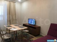 Квартира выполнена в современном евроремонте и полностью готова к проживанию. В комнате и на кухне имеется вся необходимая мебель. К услугам арендаторов новый кондиционер, холодильник новый ,телевизор и стиральная машина. Санузел совмещённый и оборудован ванной. Имеется водонагреватель.Окна квартиры выходят во двор, что обеспечивает тишину и спокойствие.