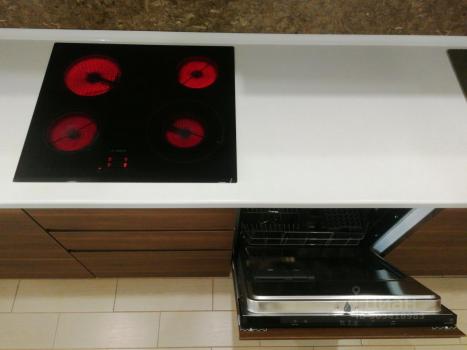 холодильник, плита, микроволновка, посудомоечная машина, телевизор.