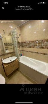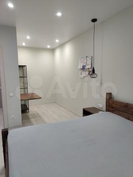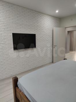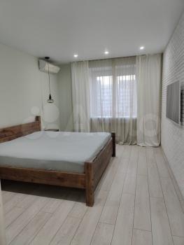 Большая просторная однокомнатная квартира 47 кв метров. Много пространства и света. Удобная двуспальная кровать. Вся техника. Большая лоджия с панорамными окнами. Великолепный вид. Рядом автобусная остановка- маршрутки в центр и до метро. Новый ЖК, кирпичный дом.