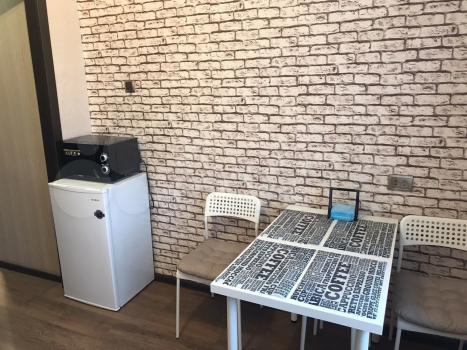 Мебель и техника: холодильник, газовая плита, микроволновка, чайник, гладильная доска, сушилка, стиральная машина, большой диван и шкаф-купе, кабельное ТВ,интернет Wi-Fi. Новые пластиковые окна и современные батареи. Хозяйских вещей нет.
