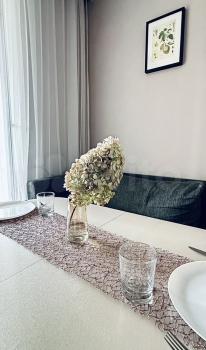 В квартире сделан качественный ремонт, что создаёт современную и стильную атмосферу. В комнате и на кухне есть вся необходимая мебель, а из техники — кондиционер, холодильник, микроволновпя печь , телевизор и стиральная машина. Планировка квартиры продумана до мелочей: просторная кухня с диваном идеально подходит для семейных ужинов. В квартире также есть уютный балкон, где можно наслаждаться свежим воздухом.