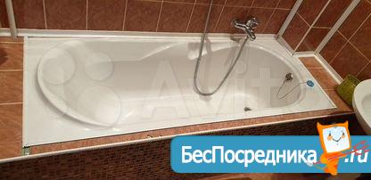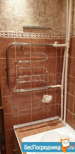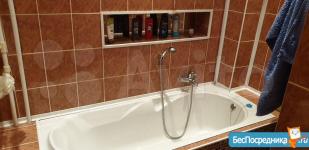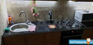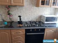 На кухне из техники - варочная поверхность и духовой шкаф Ariston, холодильник Bosch, телевизор Samsung с ТВ-приставкой, микроволновка Samsung, чайник. Гарнитур и кухонный стол с табуретами. В квартире газовая колонка Vailant. Именно поэтому у вас никогда не будет проблем с отключением горячей воды в летний период.