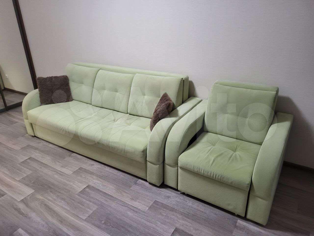 Из мебели - кухонный гарнитур, диван, кух.стол, шкаф. Из техники - стиральная машина, холодильник, электрочайник, свч, кондиционер, водонагреватель. Всё в хорошем состоянии.