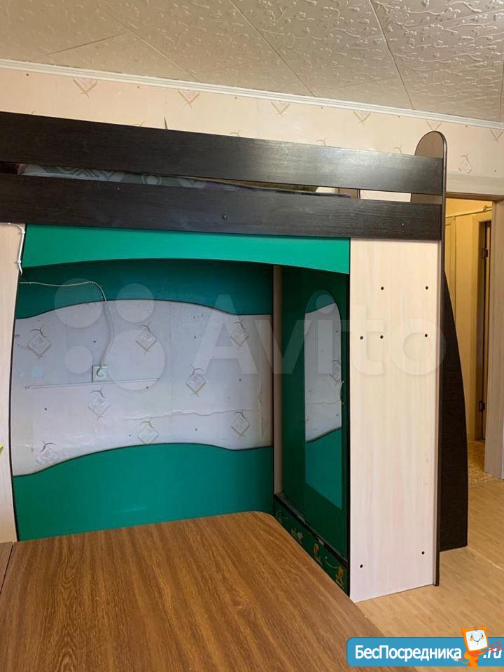 В комнате - раскладной диван, двухъярусная кровать, стол, шкафы.