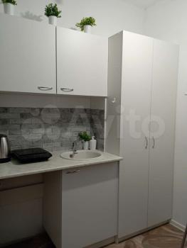 Есть вся необходимая мебель и техника в самой комнате: диван-кровать ликселе от Икеи с удобным матрасом, кресло-качели, кухонный гарнитур, холодильник, индукционная плитка, чайник, шкаф. Есть стиральная машинка. Интернет дом.ру