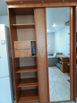 В комнате есть диван, шкаф для вещей.