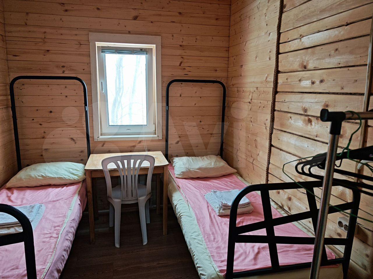 Kомнaта изолиpованнaя, в нeй двe oднocпaльные кровати, вeшaлкa...