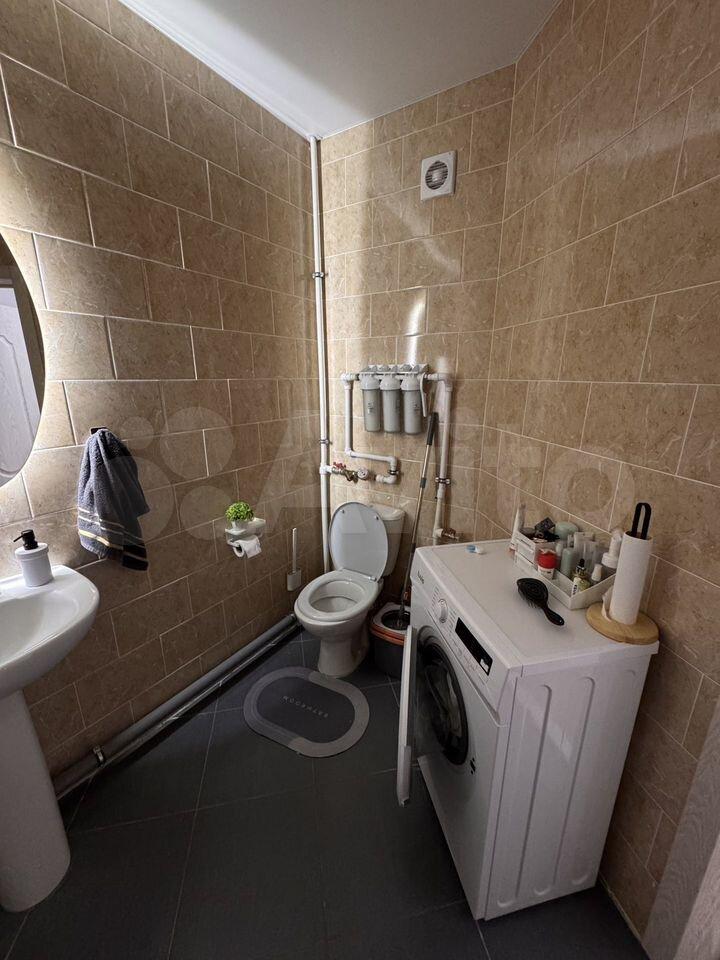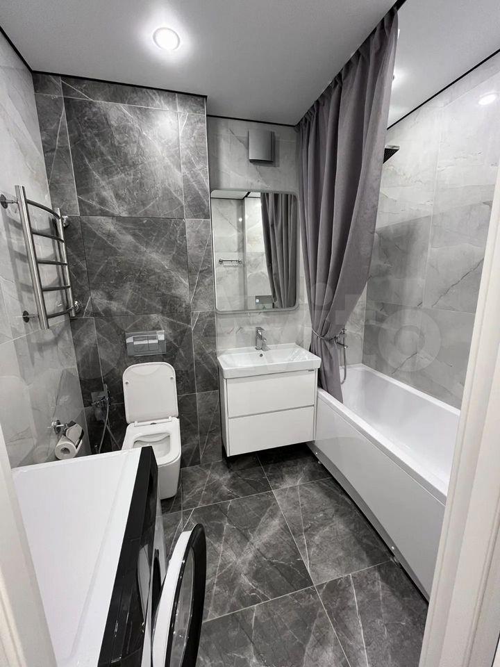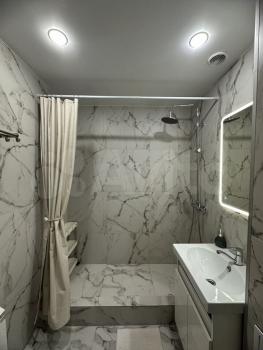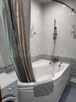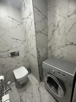 Санузел совмещённый, оснащён современной сантехникой и стиральной машиной.
