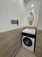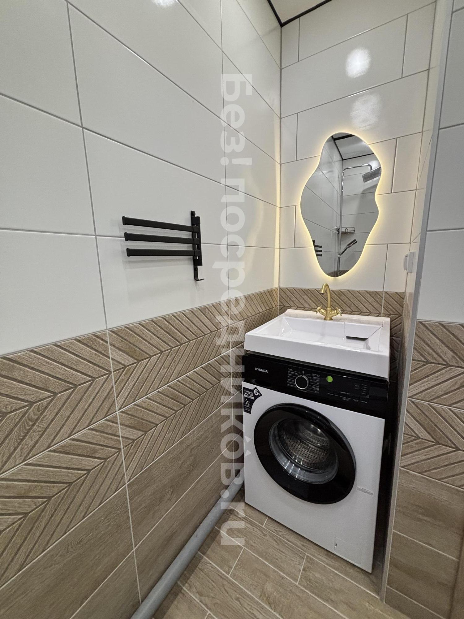 Просторная ванная, стиральная машина.
