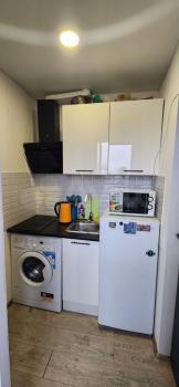 санузел - совмещённый, мебель - кухня, хранение одежды, спальные места, холодильник, плита, микроволновка, стиральная машина, телевизор.