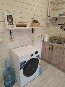 санузел - совмещённый, мебель - кухня, хранение одежды, спальные места, холодильник, плита, микроволновка, стиральная машина, водонагреватель.