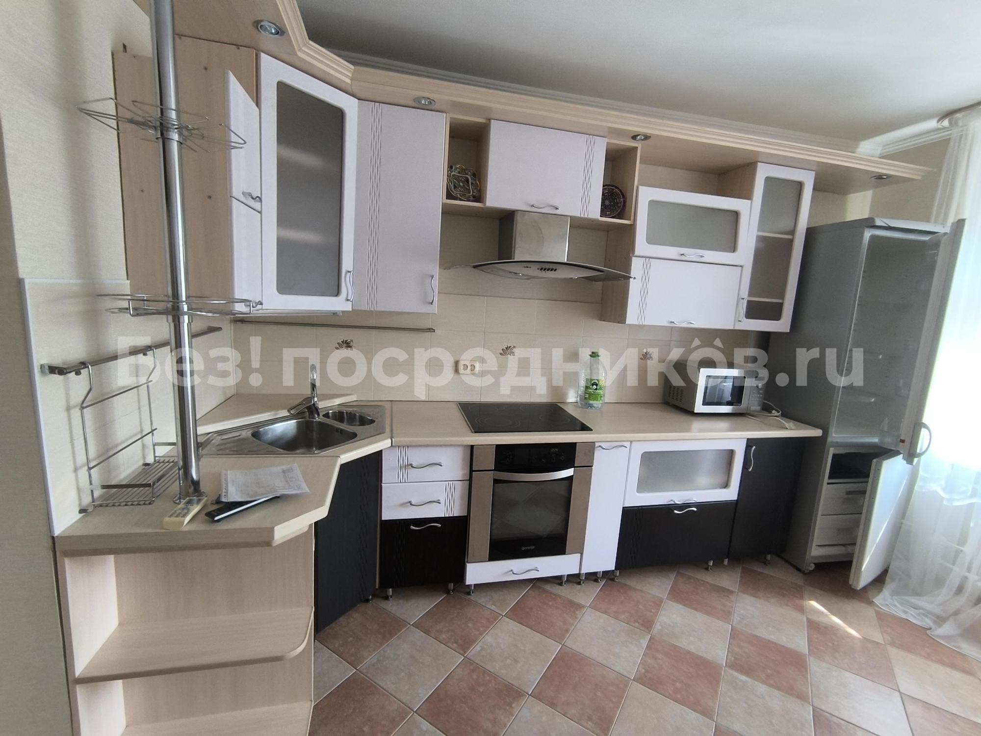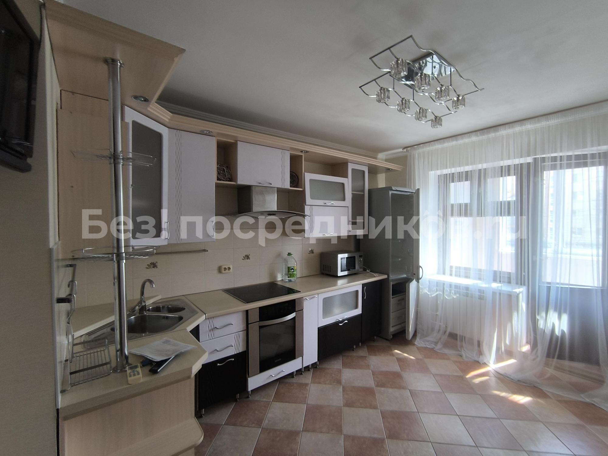 Кухня: мебель,встроенная техника: холодильник, микроволновая печь, варочная панель, духовой шкаф,посудомоечная машина.