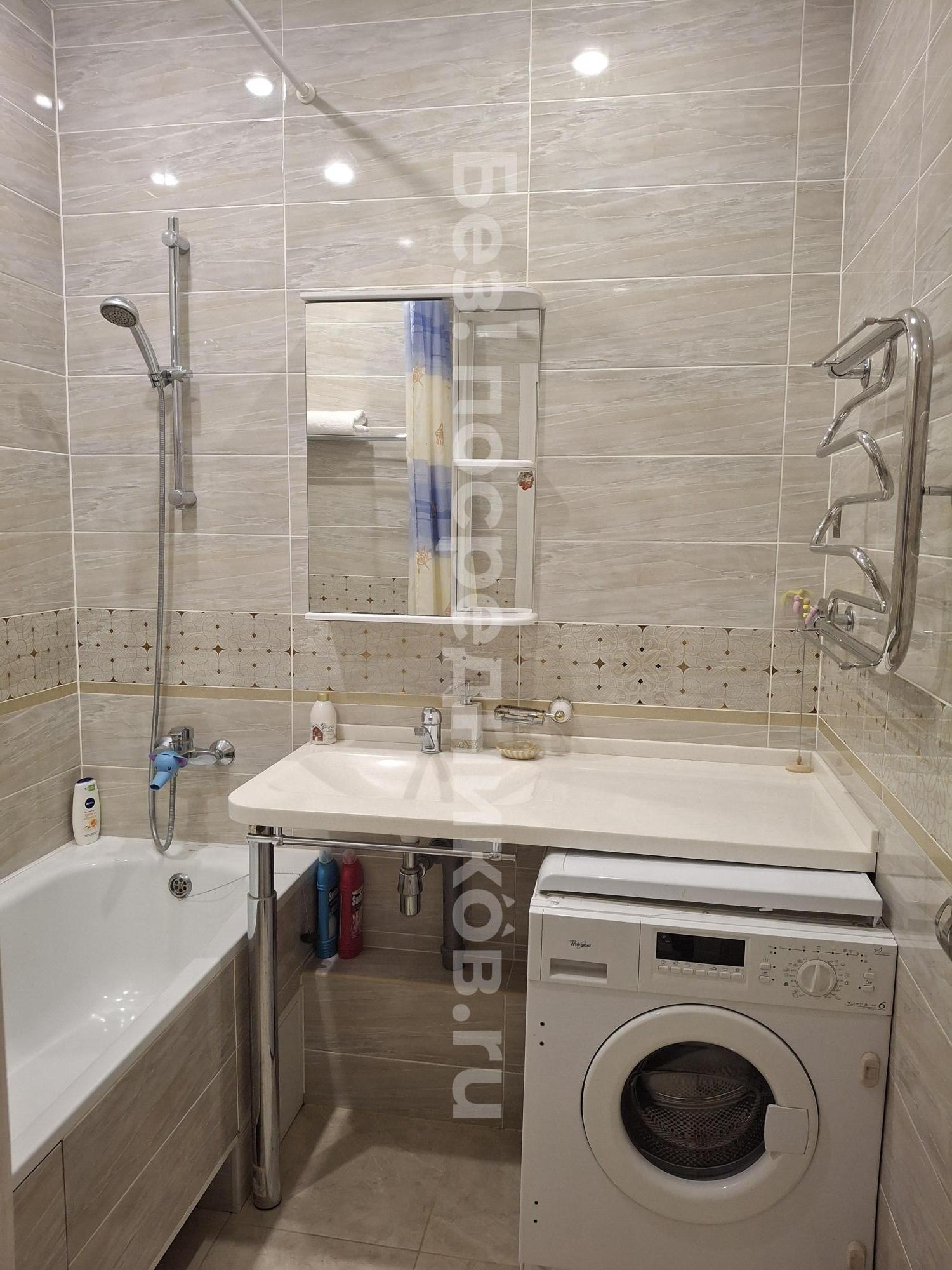 Квартира оснащена всем необходимым для комфортного проживания: диван раскладной, кухонный гарнитур, 2 шкафа-купе, стол, стулья, холодильник, плита, стиральная машина, телевизор, водонагреватель.