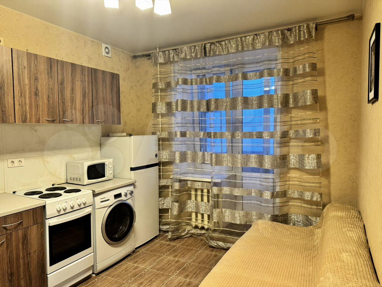 В квартире есть вся мебель и техника ( кровать 2сп+диван), телевизор, холодильник, микроволновка, стиралка.