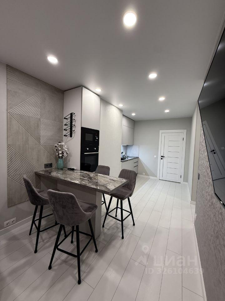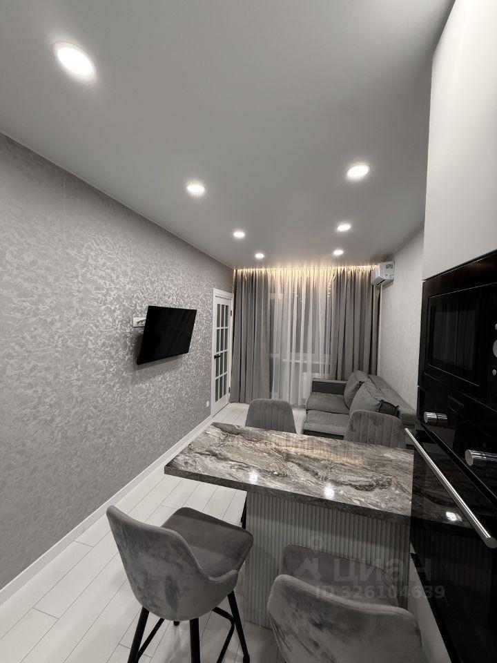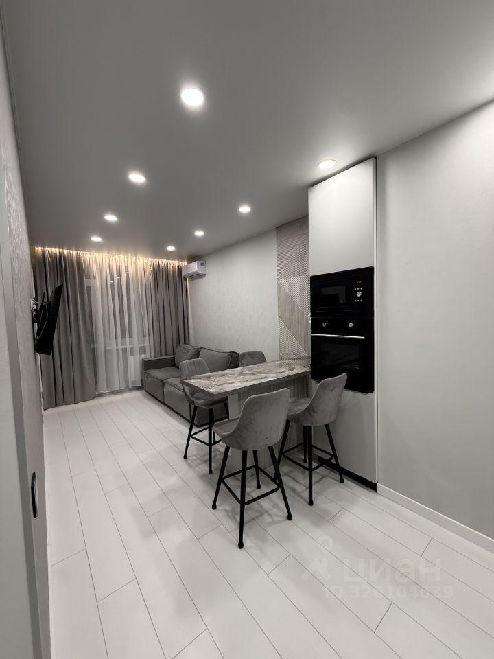Кухня площадью 11 м² оборудована современной встроенной техникой и обеденным столом. Просторная жилая зона включает уютную зону отдыха с диваном и стильным декором. Ванная комната совмещенная, оформлена в современном стиле с качественной сантехникой.