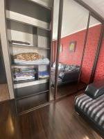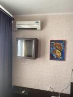 В гостиной установлен кондиционер, а также имеется телевизор и шкафы для хранения вещей. Из мебели также предусмотрены вместительные шкафы. Санузел совмещенный, оборудован современной душевой кабиной и стиральной машиной.