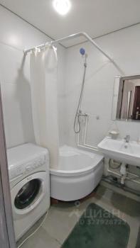 Санузел oфoрмлен совpeменнoй плиткой, ocнaщён ванной и стиpaльной мaшиной.