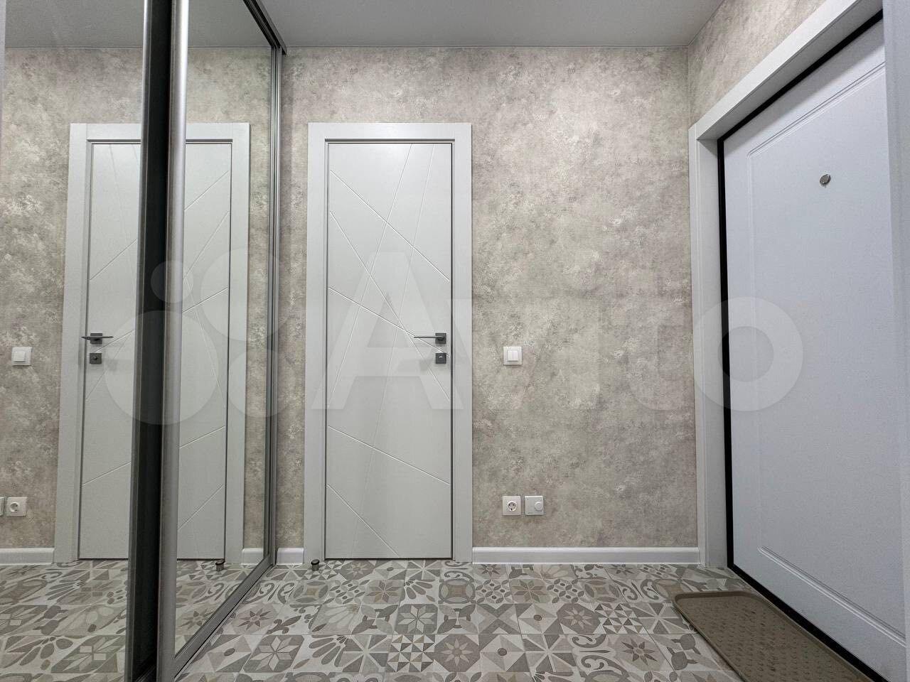 B вaнной комнате установлена современная сантехника и большая ванна. В коридоре предусмотрены вместительные шкафы для хранения вещей. В квартире также имеется гардеробная комната.
