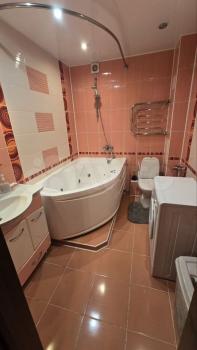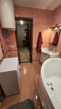 Санузел совмещенный, оснащён ванной, душевой кабиной и стиральной машиной. Есть тихий двор, где предусмотрена парковка за шлагбаумом.