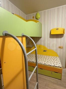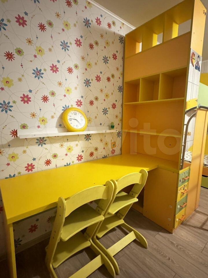 Кровать 160см, кровать-чердак 180см, два шкафа для одежды, большой рабочий стол на двоих, два качественных детских стула.