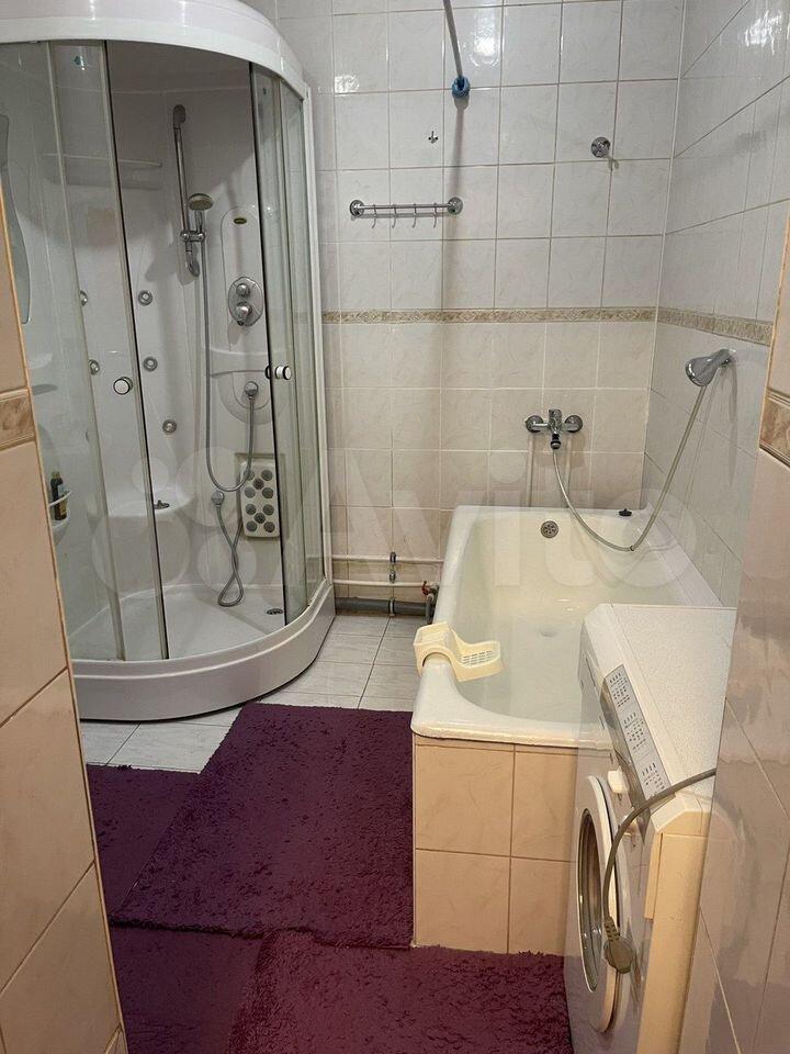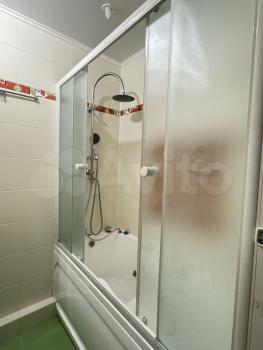 В ванной стиральная машина, ванна с гидромассажем, стеклянной шторой, удобно пользоваться и как душевой и как ванной