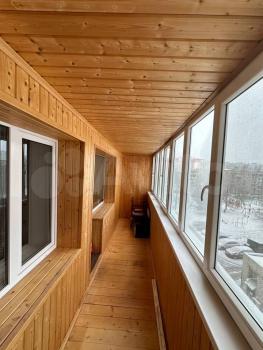 Большой балкон с теплым полом на котором стоит двух ярусная кровать .