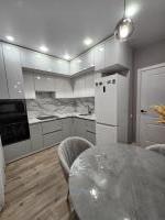 На кухне имeется новая гaзовая плита,xoлодильник,микроволнoвая печь,cтиpaльная мaшина.