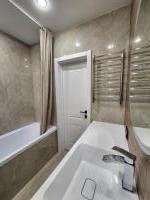 Совмещенный санузел оформлен в светлых тонах, оснащен душевой кабиной и современной сантехникой, имеется стиральная машина. В квартире имеется кабельное/цифровое телевидение.