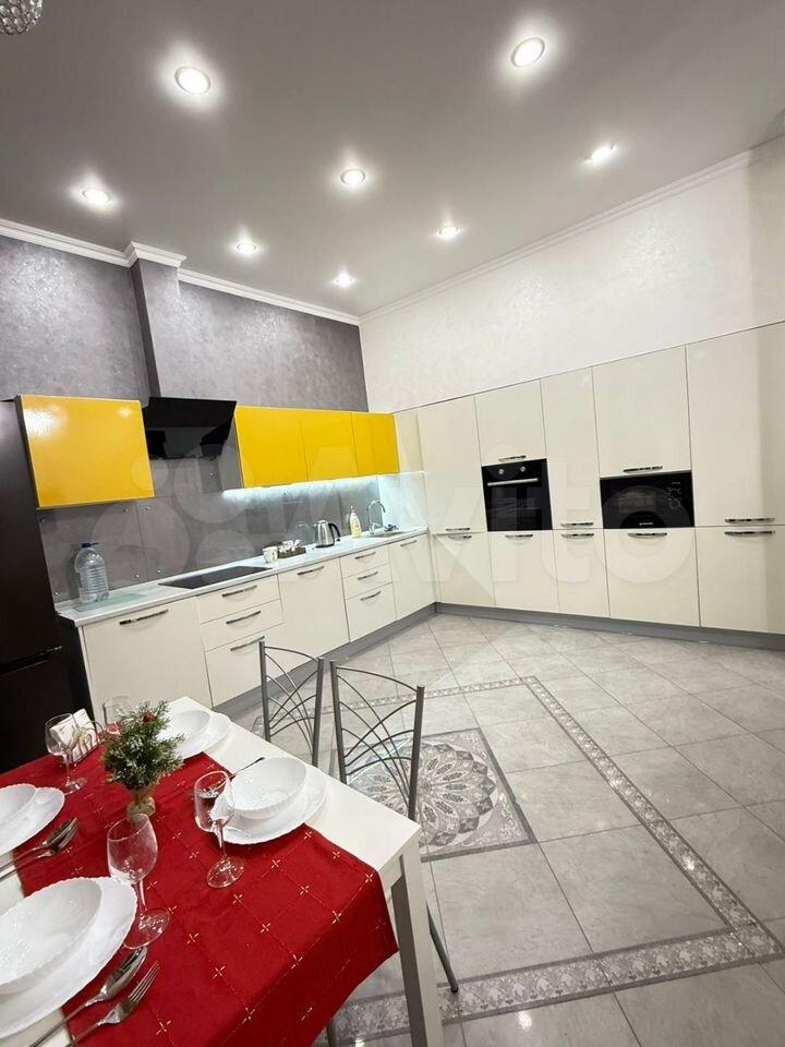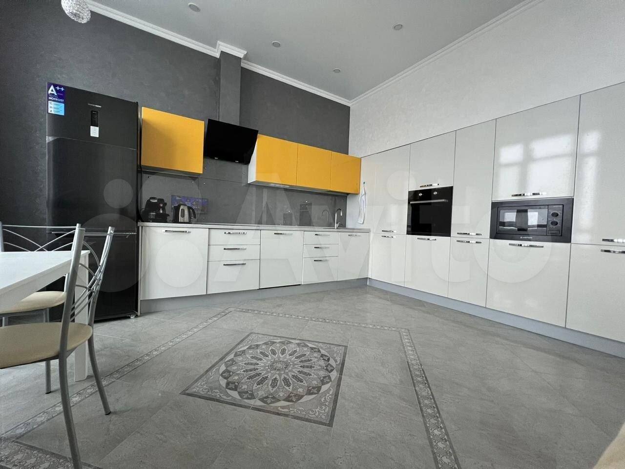 Кухня площадью 20 квадратных метров оборудована современной техникой, включая холодильник и посудомоечную машину. В квартире также имеется стиральная машина.