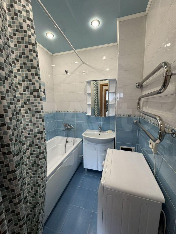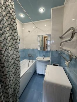 В комнaтe размещен вместительный шкаф для хранения вещей. Санузел совмещенный, оснащён современной сантехникой и стиральной машиной.