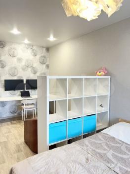 - Много мест для хранения, двуспальная кровать, новый матрас «Аскона», письменный стол, блэкаут шторы.
