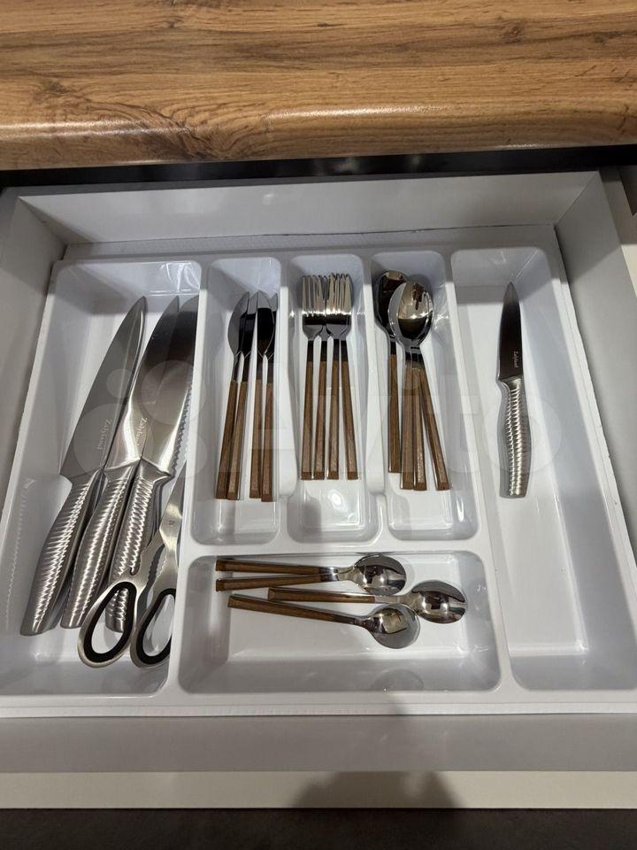 - Новая посуда и столовые приборы, гладильная доска, утюг.