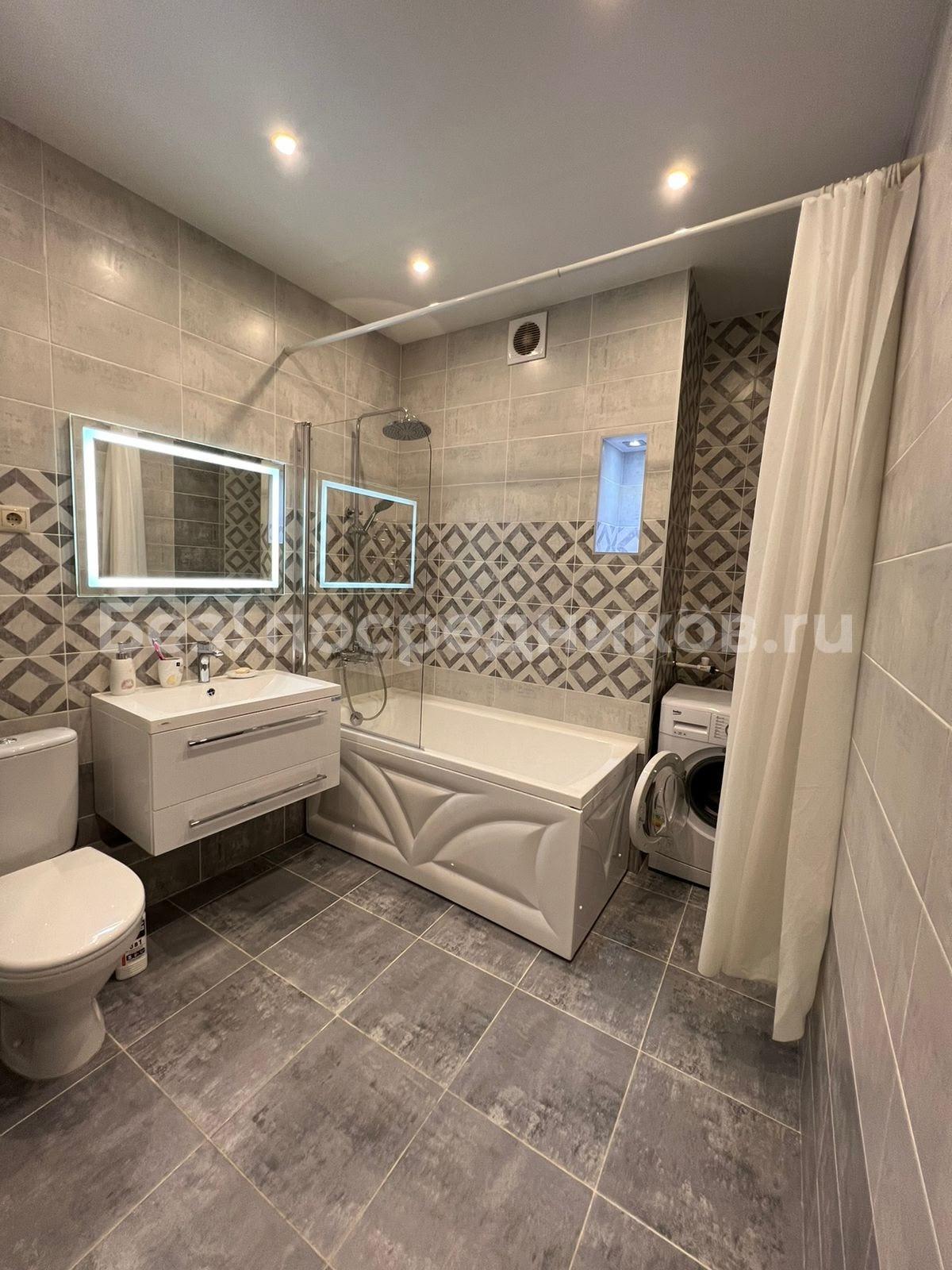 Сан узел в кафеле, стиральная машина с сушилкой