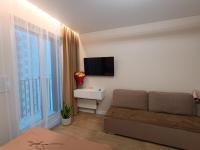 санузел - раздельный, мебель - кухня, хранение одежды, спальные места, кондиционер, холодильник, плита, микроволновка, стиральная машина, телевизор.