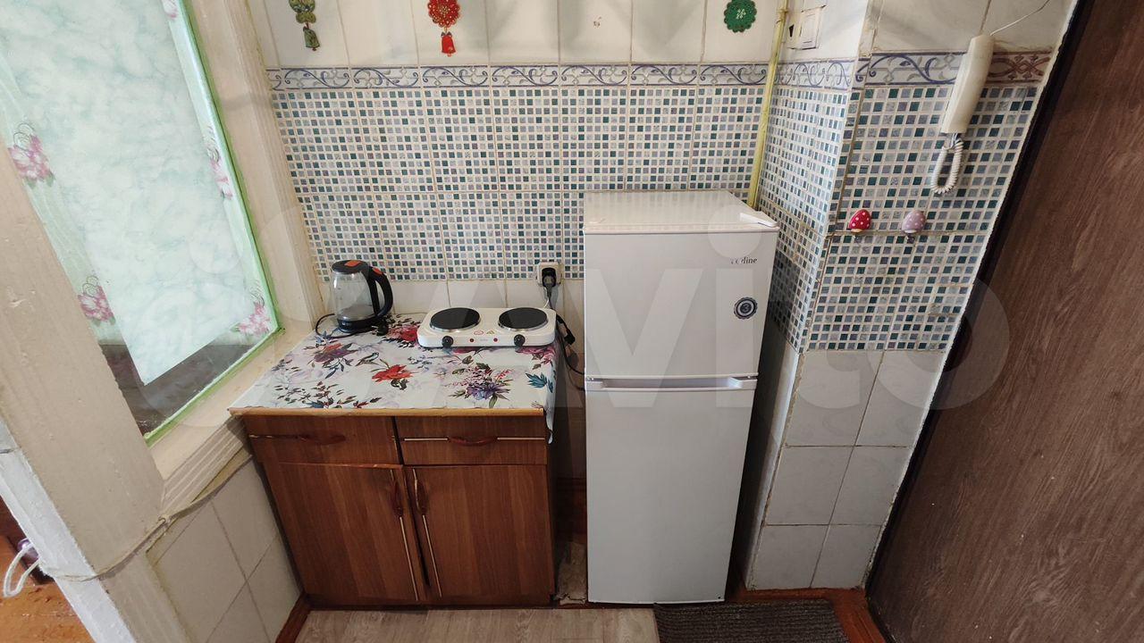 В комнате все есть для комфортного проживания. Холодильник, стиральная машина, телевизор, бойлер, микроволновая печь, электрическая плита, диван. Несмотря на первый этаж, квартира очень теплая.