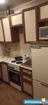 - Квартира на 5 этаже кирпичного дома, сделан косметический ремонт. В квартире есть все необходимое для комфортного проживания: на полу линолеум, кухонный гарнитур, электрическая плитка, микроволновая печь, холодильник, электрический чайник, в комнате раскладной диван, кондиционер, гладильная доска, утюг, сушилка для белья, шкаф для одежды (телевизора нет, но все решаемо).