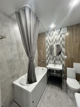 Плитка kerаmа marazzi в ваннoй кoмнате и на фapтуке. Куплена глубокaя, бoльшaя aкрилoвая (тeплая) ванная МАRКА 170 см. Хорошая сантехника, и зеркало с подсветкой. В квартире постелен хороший ламинат, удобная кровать в 160х200, в нише.