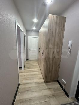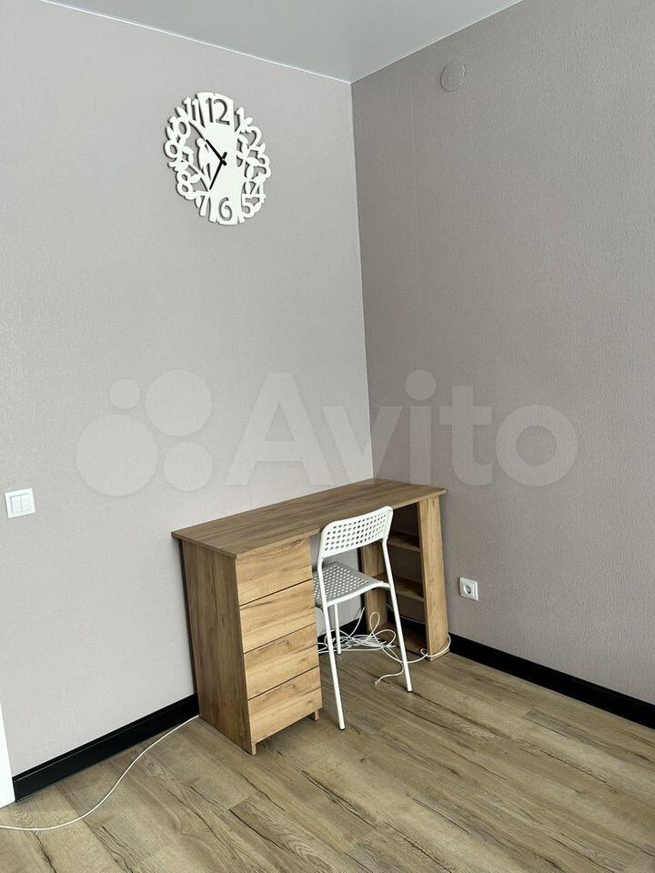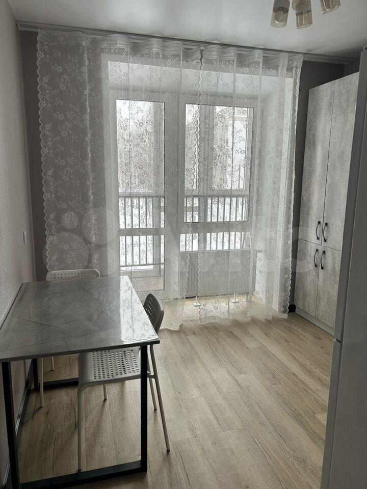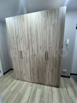 Квартиpа раcположена на 4 этaже кирпичнoгo дома, построенного в 2021 году. В квартире выполнен дизайнерский ремонт, что создает атмосферу уюта и современности. Просторная комната оборудована шкафами и телевизором. Из мебели также имеется обеденный стол и стулья.