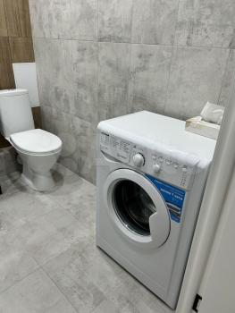 Кухня оснащена необходимой бытовой техникой, включая холодильник и стиральную машину, микроволновка и индукционная варочная поверхность. Санузел совмещенный, оформлен стильными материалами и оснащен современной сантехникой.