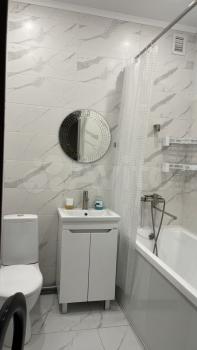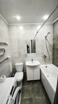 Санузел совмещенный, оформлен в светлых тонах и оснащен современной сантехникой. Имеется балкон, где можно наслаждаться свежим воздухом.